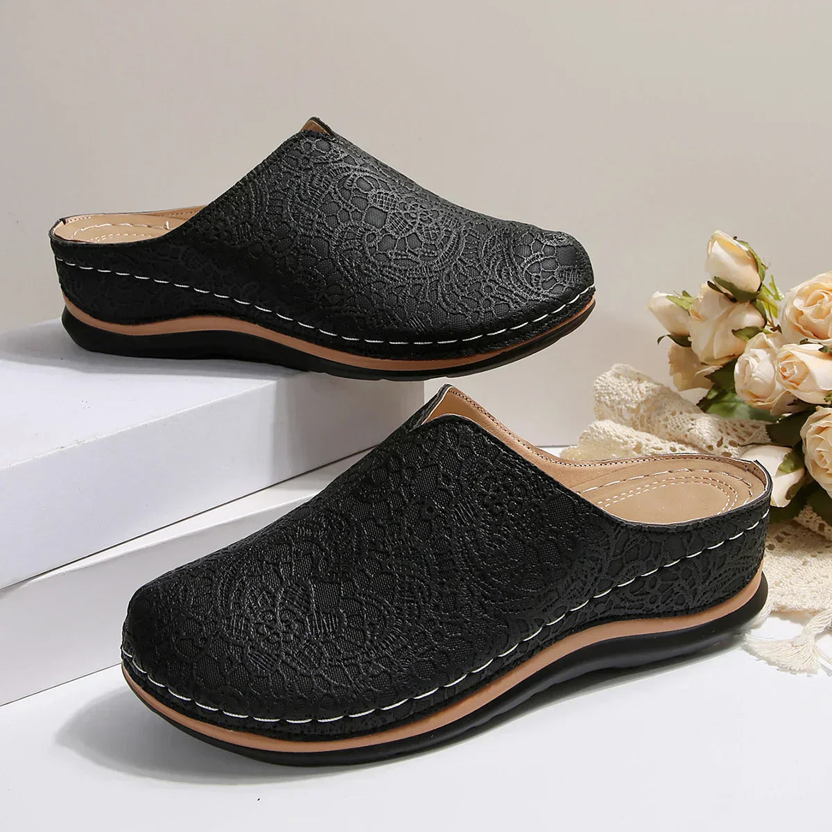 Intricate floral lace overlays sheer mesh for a delicate, romantic aesthetic that stands out from ordinary flats. The effortless slip-on design and cushioned footbed deliver instant comfort, while the pointed toe adds a polished, feminine touch.